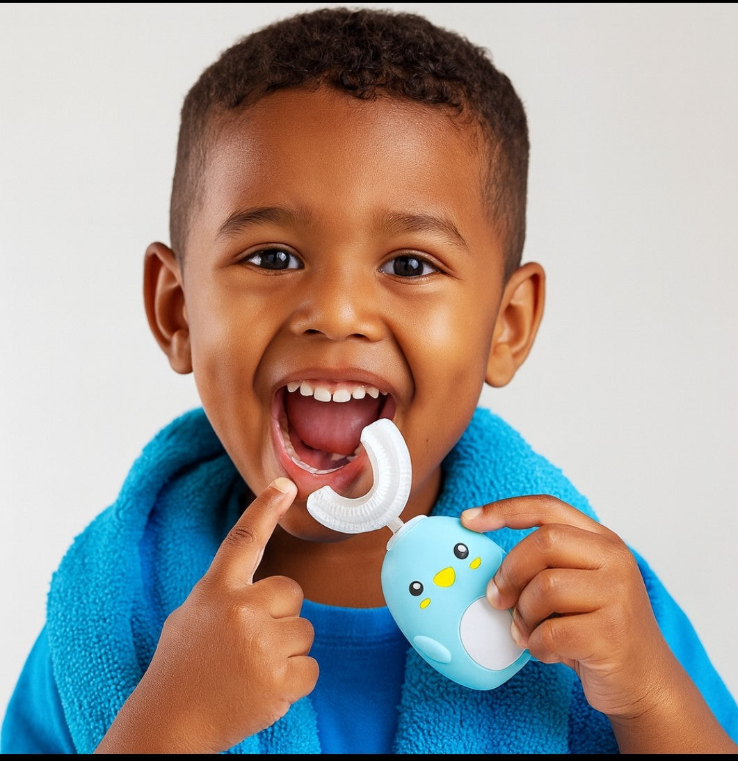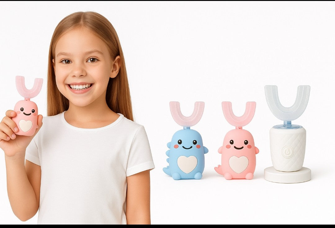 Brosse à Dents Électrique Enfant U-Shape 360° Dino – Silicone Doux | KIARAURA